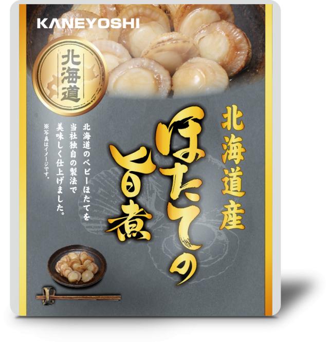 【ほたての旨煮】北海道産のほたてを醤油ベースで味付けをし、じっくり煮込みました。開けてそのままでも食べることができますが、お好みで湯煎で温めて食べることもできます。常温保存ができ、賞味期限は製造から2年です。