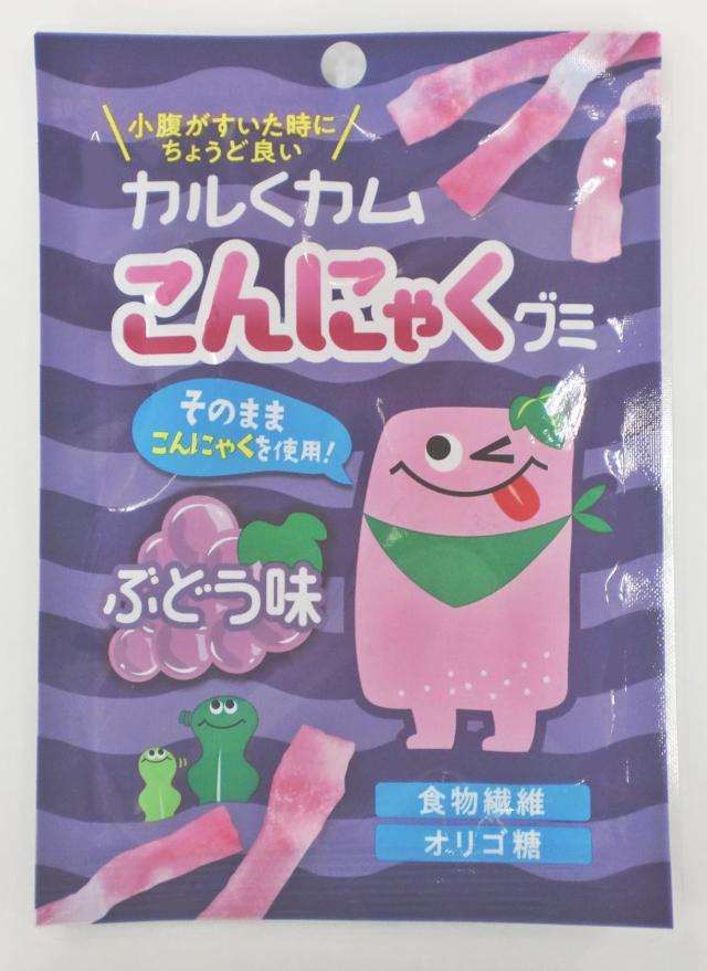この度、従来のおしゃぶりこんぶとは異なり新ジャンルの商品【カルくカムこんにゃくグミ】を開発いたしました。地元広島の湯来町にあるこんにゃくメーカーが製造する本物のこんにゃくを味付け、乾燥し、グミに仕立てました。世の中のグミとは異なり、こんにゃくそのものを使用しているので罪悪感なく小腹満たしとしてもぴったりな商品となっております。