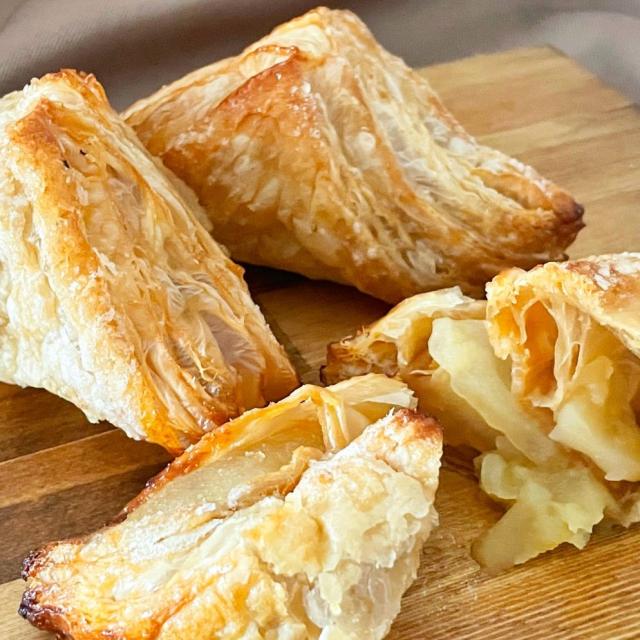 りんごが実る秋から冬には自ら収穫や仕入れに行き手作業で皮をむいて加工、その後パイ生地にりんごをたっぷり詰め込んで焼き上げております。