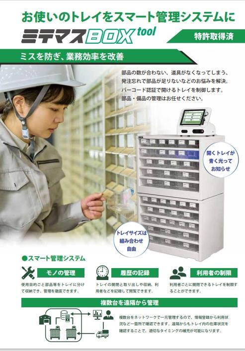 ミテマスBOXtoolは工場等でのミスを防ぎ、業務効率を改善に寄与。誤配薬防止カートは静脈認証・バーコード認証でトレイを制御し、配薬時の人物誤認を防ぎます。