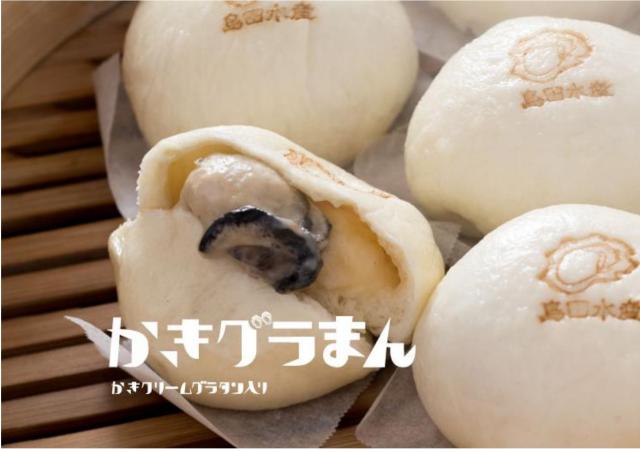 を行っています。人気商品「かきグラまん」(島田水産のかきが丸ごと一